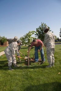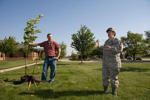 Brig. Gen. Dean Despinoy, 434th Air Refueling Wing commander, left, passes the 434th Operations Group flag to Col. William Mason, as he assumes command. Colonel Mason assumed command from Col. Randall Ogden, who transferred to Seymour-Johnson AFB, N.C. Prior to assuming command of the 434th