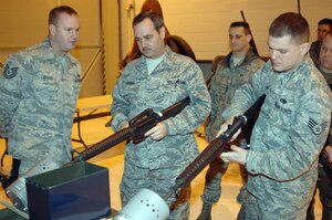 Proper weapons safety is important, because it helps prevent weapon mishaps. Tech. Sgt. Timothy Boggs, 434th Security Forces Squadron member, gives step-by-step M-16 clearing instructions to Master Sgt. Joseph Lageose, 434th Aircraft Maintenance Squadron sortie support flight chief, and Joseph