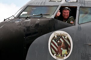 Col. Doug Schwartz, 434th Air Refueling Wing commander, is all smiles upon landing at Grissom Air Reserve Base, Indiana May 13, 2016. The flight was his final as he retires from the Air Force Reserve May 14, 2016. (U.S. Air Force photo/Senior Airman Dakota Bergl)