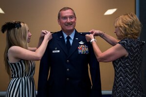 Airmen and family members filled a room to witness a long-standing tradition as one of Grissom's own was pinned with an eagle.Col. Douglas Gullion, 434 Operations Support Squadron commander, was recently promoted to the rank of colonel in front of family, friends and peers during a pin-on ceremony